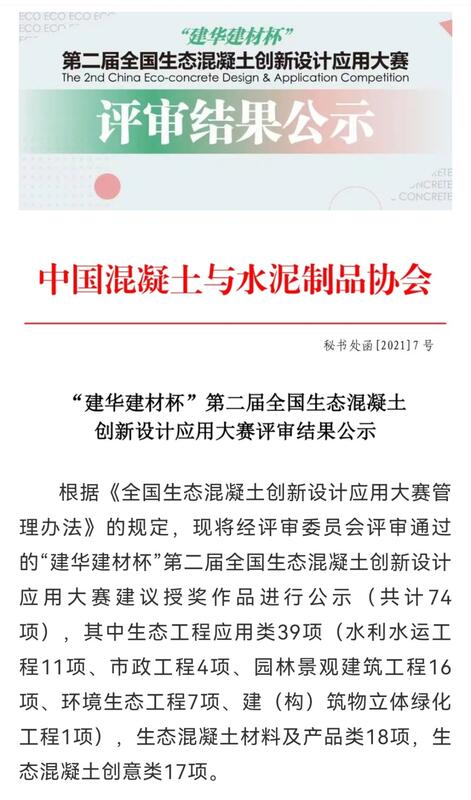 為深入貫徹落實(shí)習(xí)近平總書記關(guān)于保障國(guó)家水安全重要講話精神,積極推動(dòng)新階段水利高質(zhì)量發(fā)展,切實(shí)做好成熟適用水利科技成果推廣運(yùn)用,切實(shí)提高行業(yè)科技水平,水利部組織開展了2021年度成熟適用水利科技成果的征集、評(píng)審與公示工作。我公司研發(fā)的核心技術(shù)“CBS植被混凝土生態(tài)防護(hù)技術(shù)”獲得入選,其應(yīng)用項(xiàng)目“廣西馱英水庫(kù)樞紐工程混凝土邊坡植被混凝土生態(tài)修復(fù)工程”在2021年度“建華建材杯”第二屆全國(guó)生態(tài)混凝土創(chuàng)新設(shè)計(jì)應(yīng)用大賽榮獲一等獎(jiǎng)。