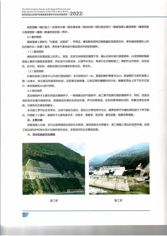 湖北潤智生態(tài)科技有限公司作為國內(nèi)生態(tài)護坡領航者,其創(chuàng)新成果緊扣陜西省科學技術協(xié)會聯(lián)合沿黃省區(qū)科協(xié)等單位舉辦的“2022年黃河流域生態(tài)保護和高質(zhì)量發(fā)展學術論壇”的主題,貫徹習近平總書記關于黃河流城生態(tài)保護和高質(zhì)量發(fā)展的系列重要講話材神,落實黃河國家戰(zhàn)略,我公司相關創(chuàng)新成果CBS植被混凝土/VCS植生水泥土等生態(tài)防護技術、專利產(chǎn)品—潤智生態(tài)劑,及典型案例——“引漢濟渭工程黃金峽水利樞紐壩肩硬質(zhì)邊坡生態(tài)工程”作為科技與經(jīng)濟融合的成功案例獲得入選“2022黃河流域生態(tài)保護和高質(zhì)量發(fā)展學術論壇實踐案例”中。